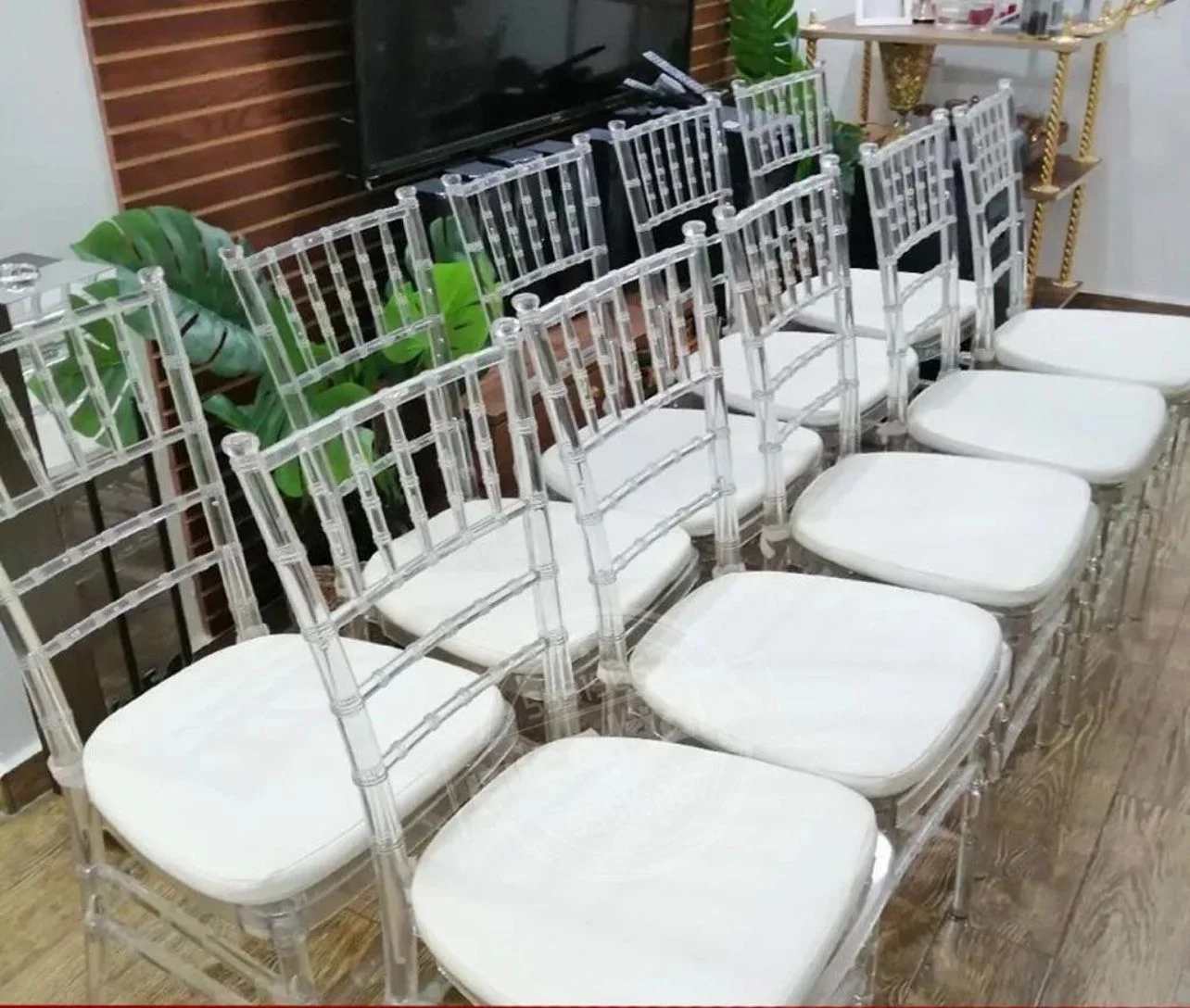 - كراسي تيفاني: تتميز بخطوطها الأنيقة وقابليتها للتلوين والتزيين، متوفرة بألوان متعددة مثل الذهبي، الفضي، والأبيض الكلاسيكي.